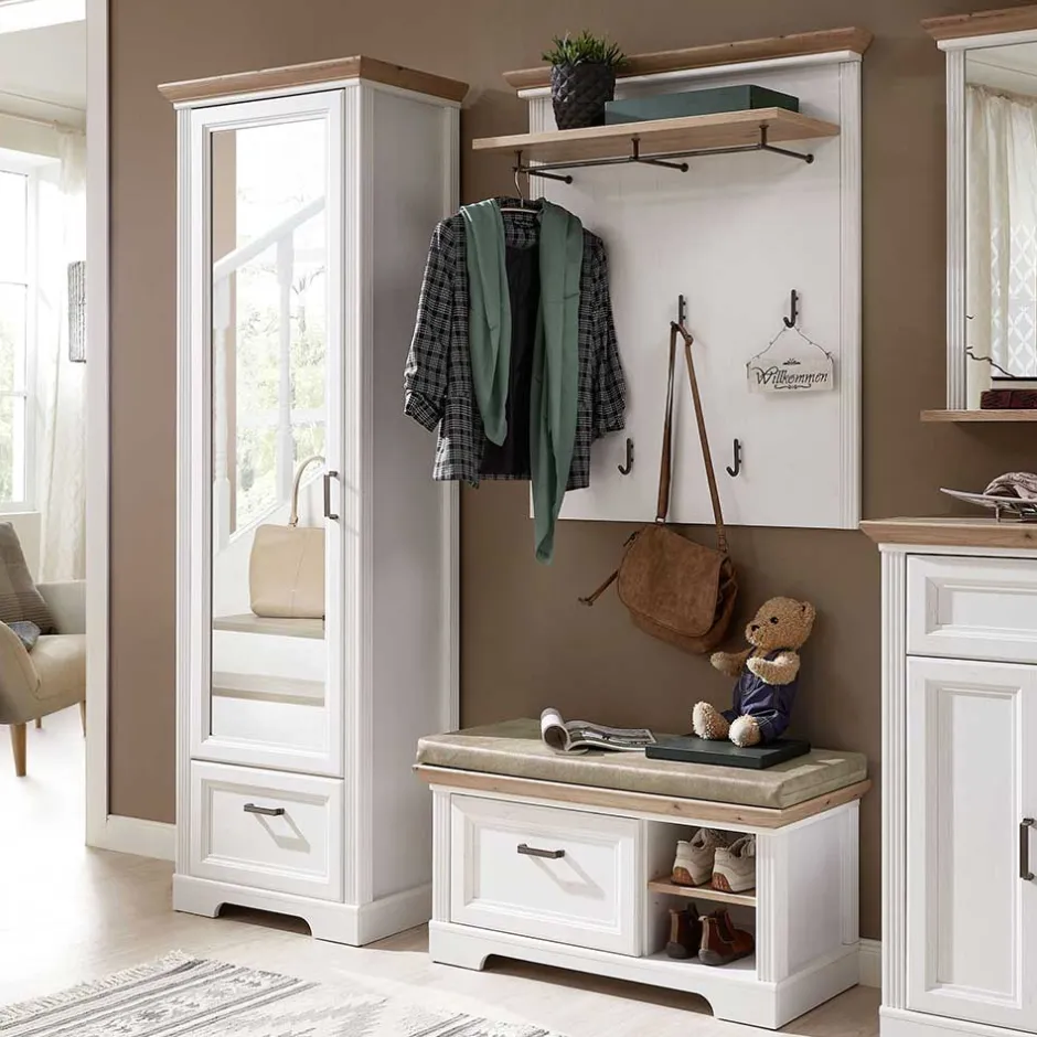- Mustergültige Garderoben-Kombination in Pinie Weiß und Eichefarben