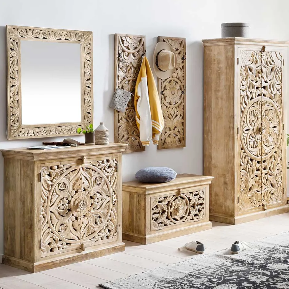 - Repräsentative Garderobenmöbel in Mangoholz Sandfarben