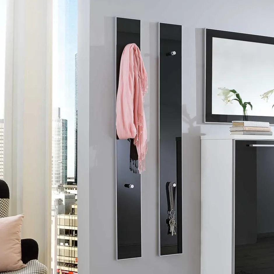 - Bestehend aus zwei Garderobenpaneelen, Schuhschrank und Spiegel