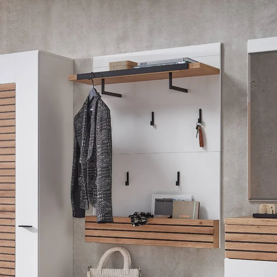 - Attraktives Garderobenpaneel in Weiß matt und Wildeichefarben