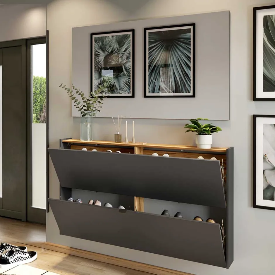 - Zwei Schuhklappen mit integrierter Dämpfung sorgen für Ordnung im Eingangsbereich