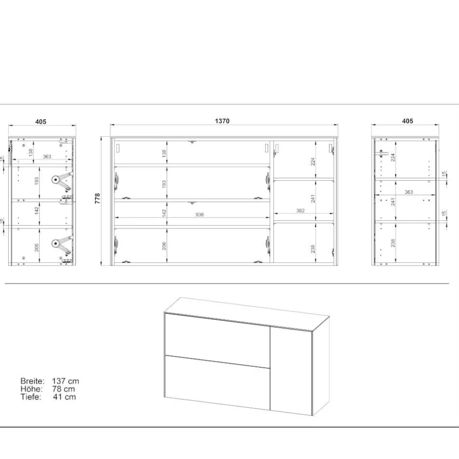 - 137 cm Breit, 78 cm Hoch, 41 cm Tief
