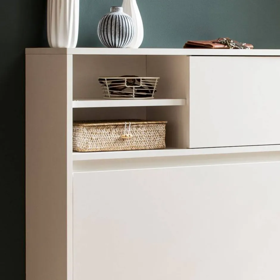 - Hinter der Tür ein Staufach, links zwei offene Fächer
