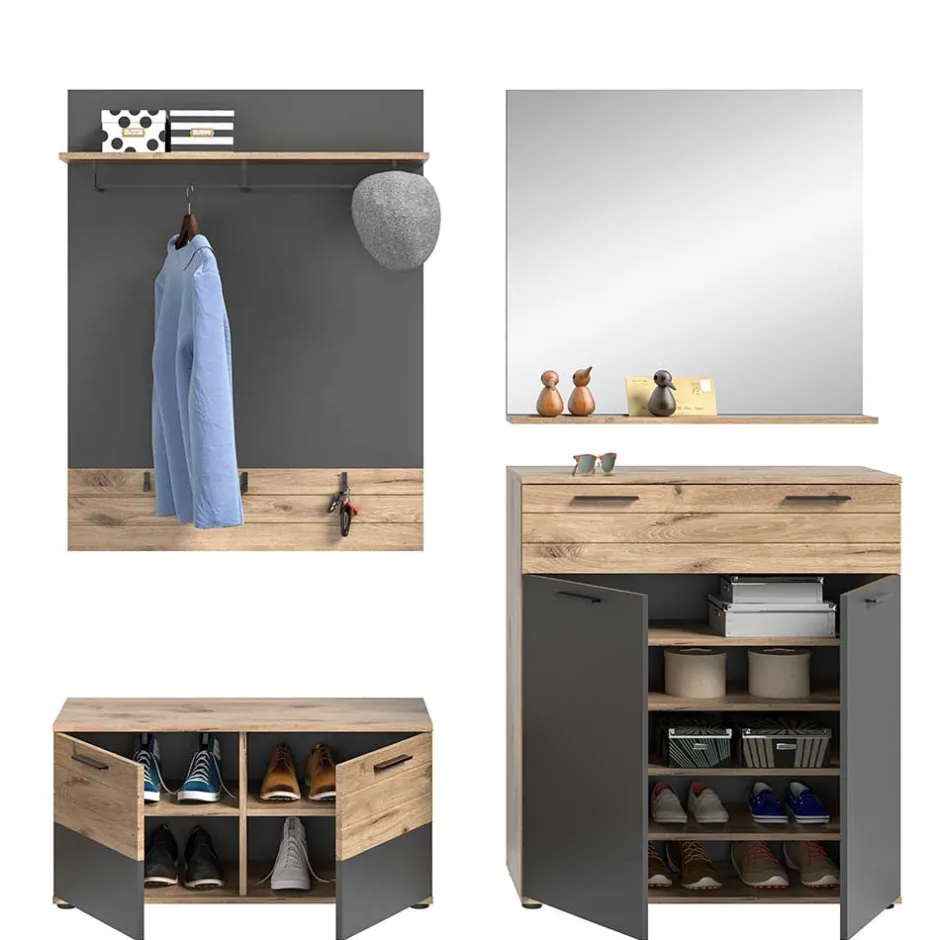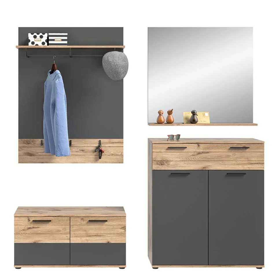 - Aparte Garderobenmöbel in Wildeichefarben und Grau