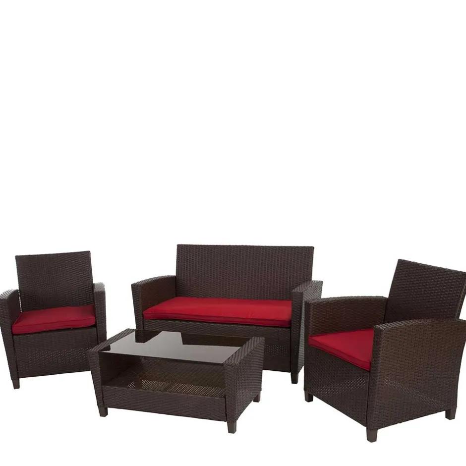 in Dunkelbraun und Rot aus Kunstrattan (vierteilig)