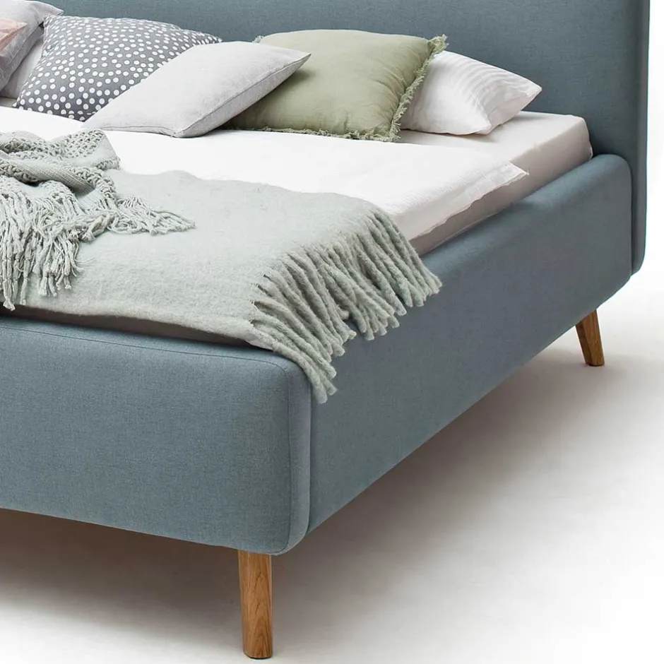 - Brandaktuelles Polsterbett in Hellblau und Eichefarben