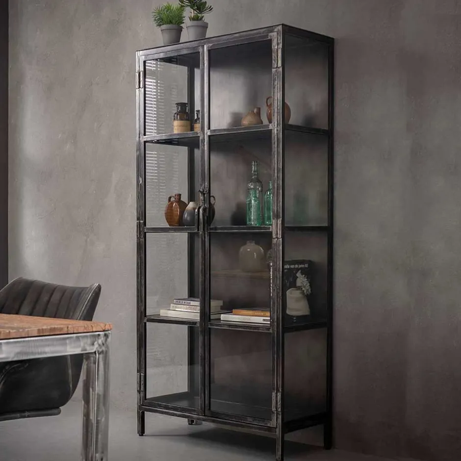 - Trendstarker Metall-Vitrinenschrank in Anthrazit