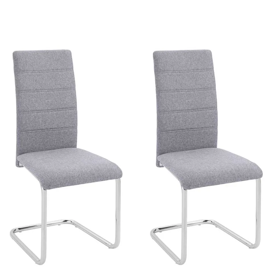 - Komfortables Schwingstuhl Set in Hellgrau und Chromfarben
