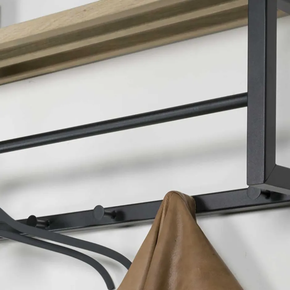 - Ansprechende Hängegarderobe in Schwarz sowie Eichefarben