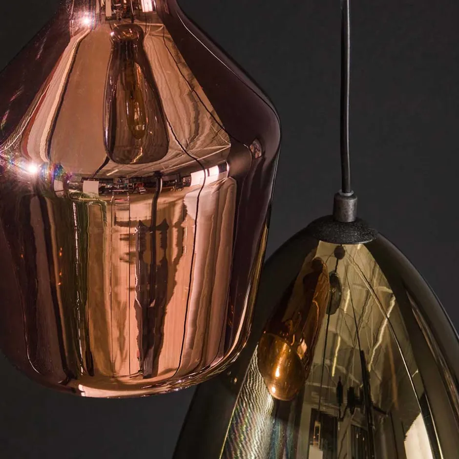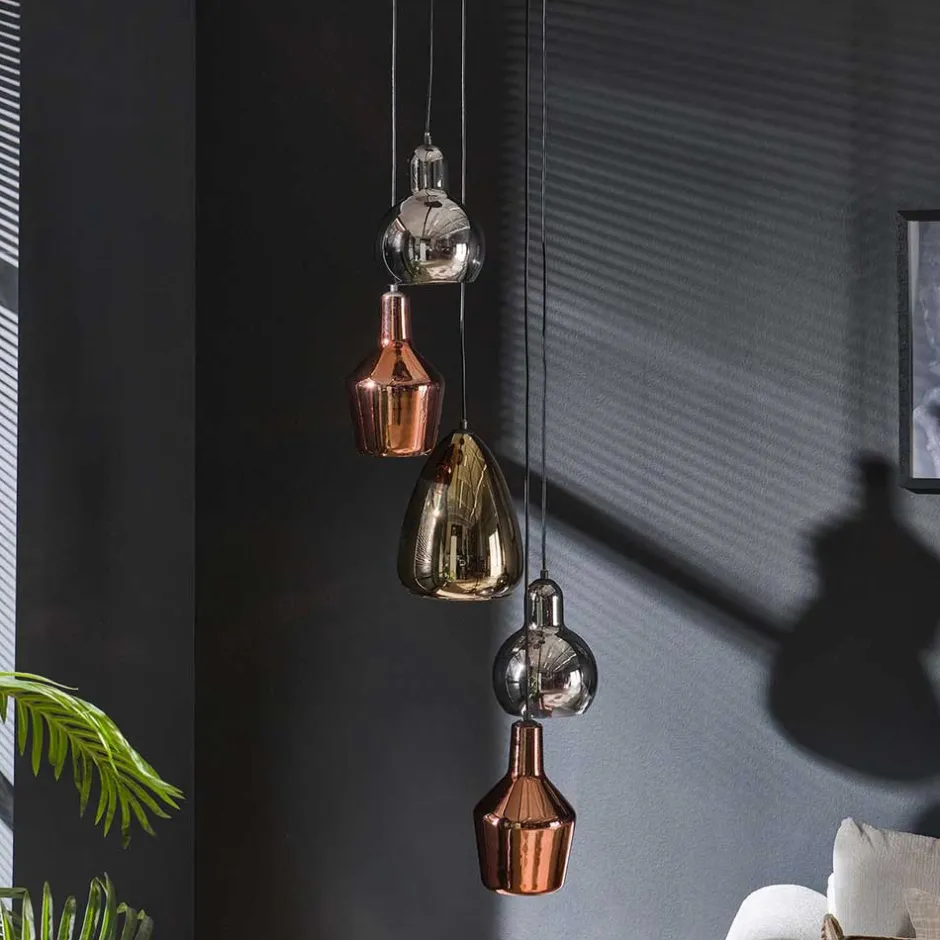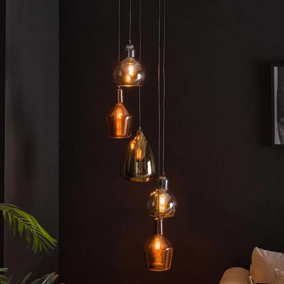 - Brillante Pendelleuchte in Kupfer-, Chrom- und Goldfarben