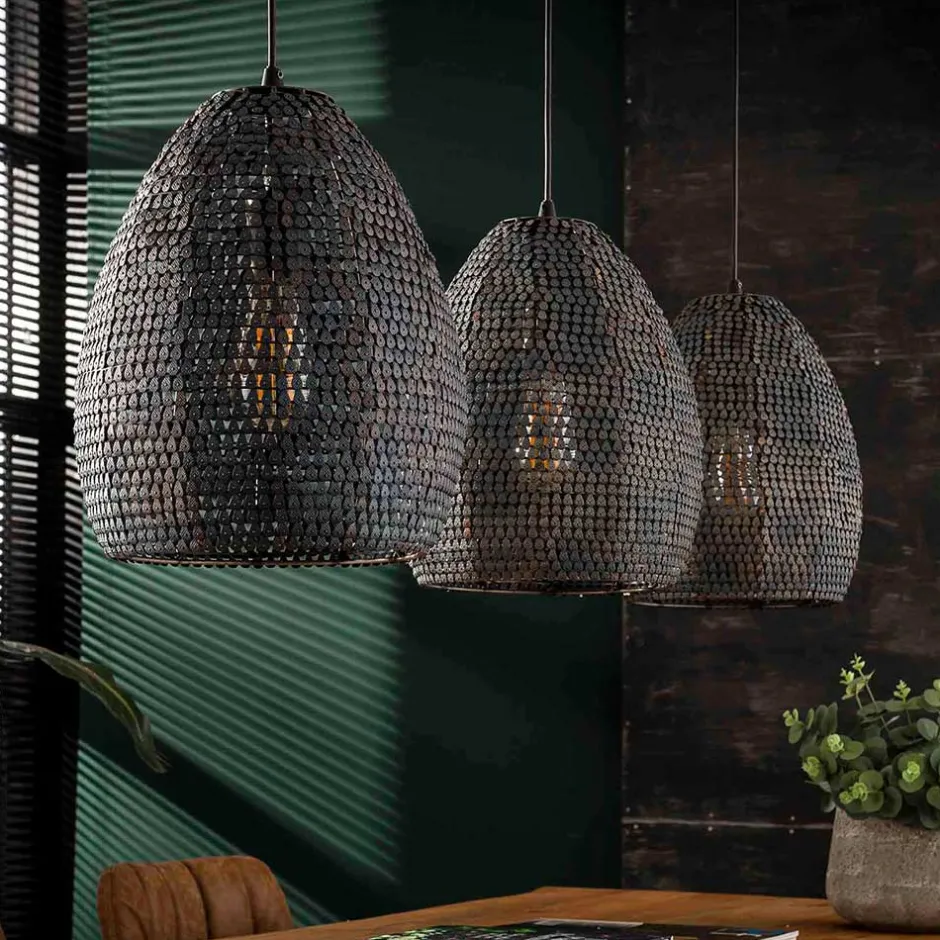 - Drei halbtransparente, perforierte Lampenschirme mit einem Durchmesser von je 28 cm