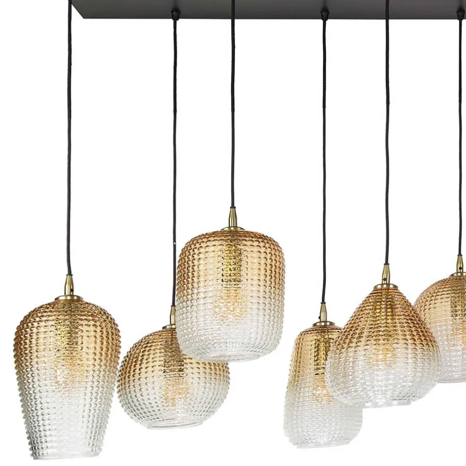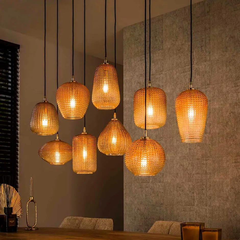 - Eleganter Farbverlauf der Lampenschirme von bernsteinfarbig zu transparent