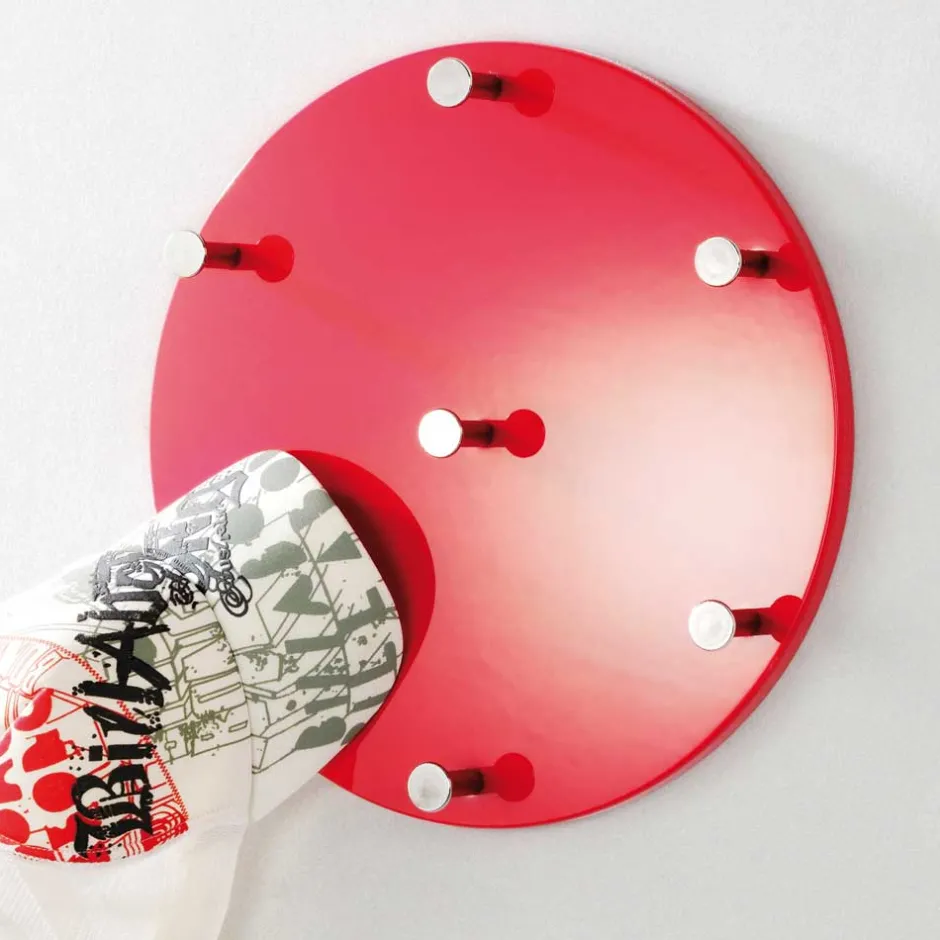 - Rote, runde Wandgarderobe