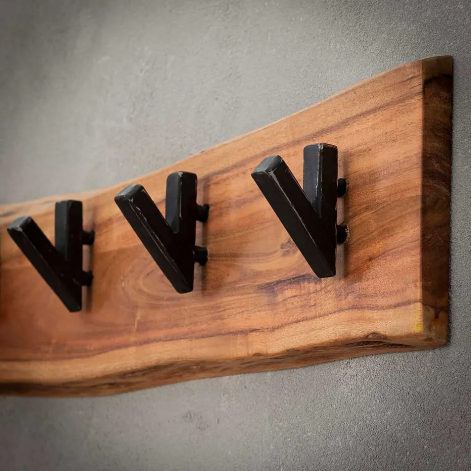 - Rustikale Wandgarderobe in Akaziefarben
