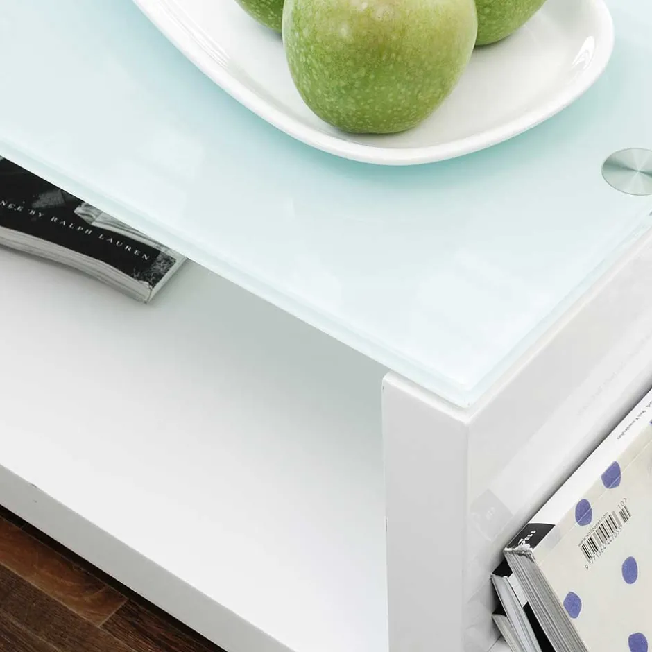 - Drei Ablagen für Zeitschriften und Fernbedienung