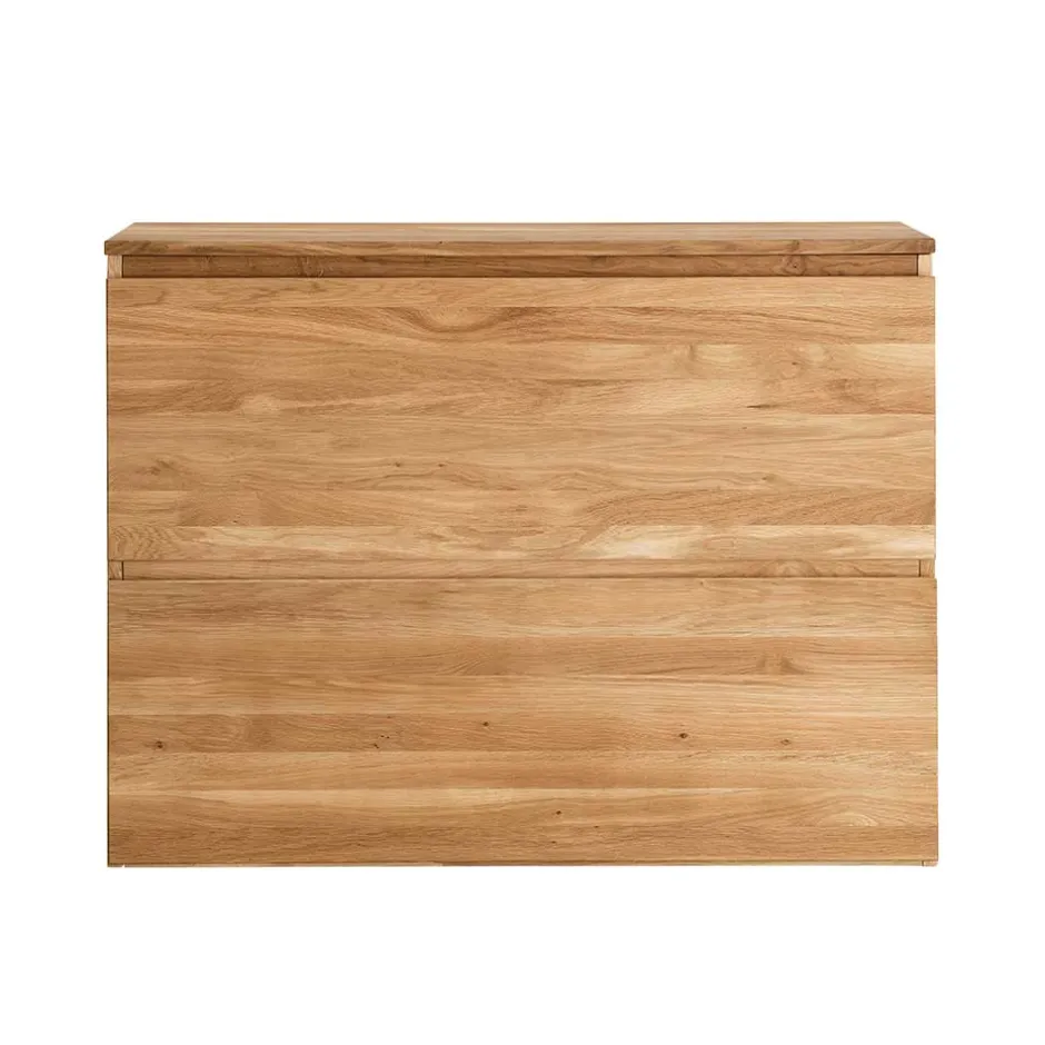 - Fronten, Deckplatte und Korpusseiten lamellenverleimt, Bodenplatte parkettverleimt