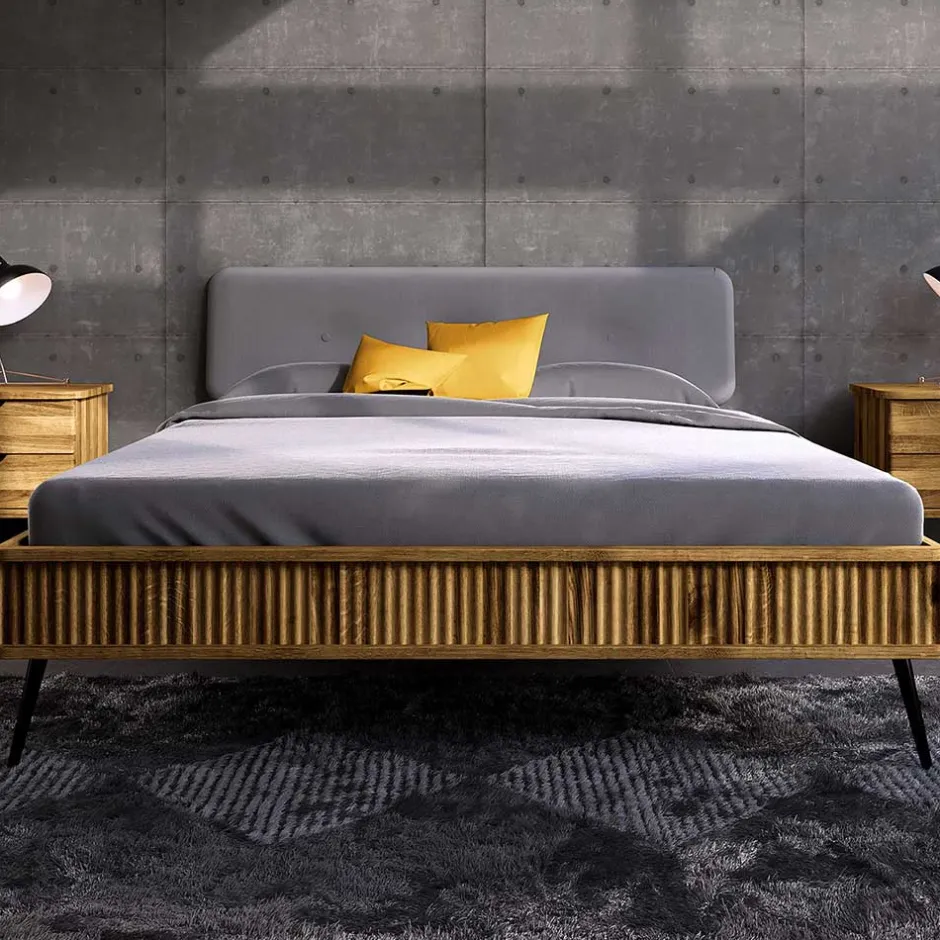 - Faszinierendes Bett in Wildeiche, Schwarz und Grau