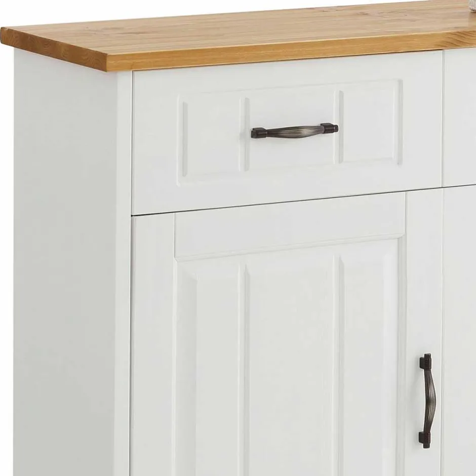 - Schmuckes Landhaus Sideboard in Kiefer Weiß und Honigfarben