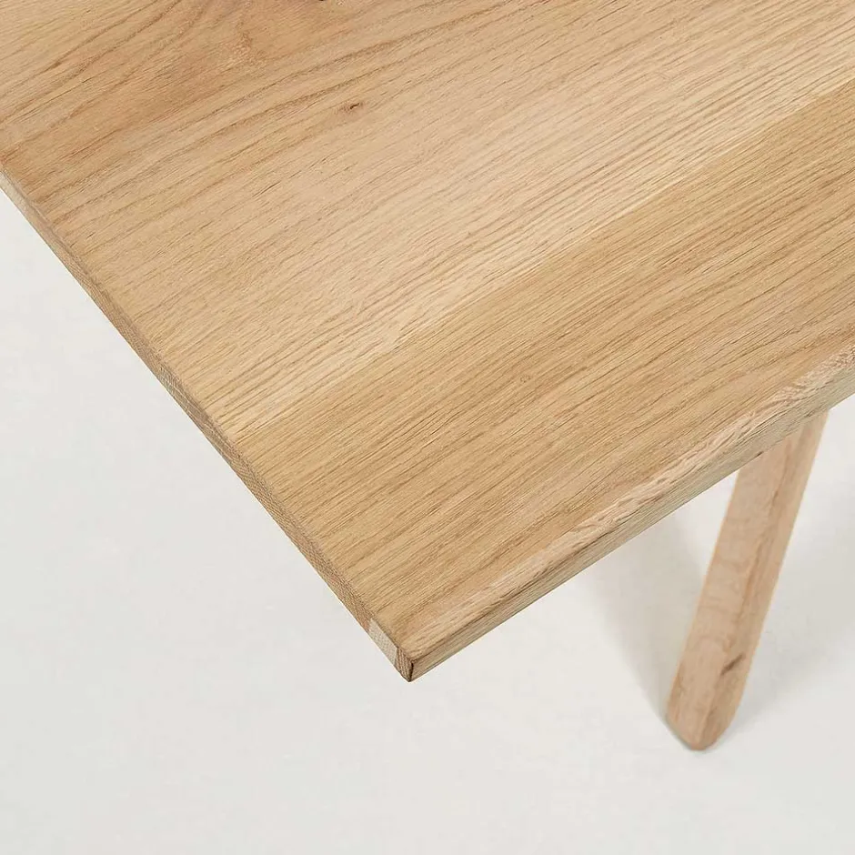 - Tischplatte mittig mit einer Stärke von ca. 3 cm, läuft zu den Kopfenden hin aus bis zu einer Stärke von ca. 1,5 cm