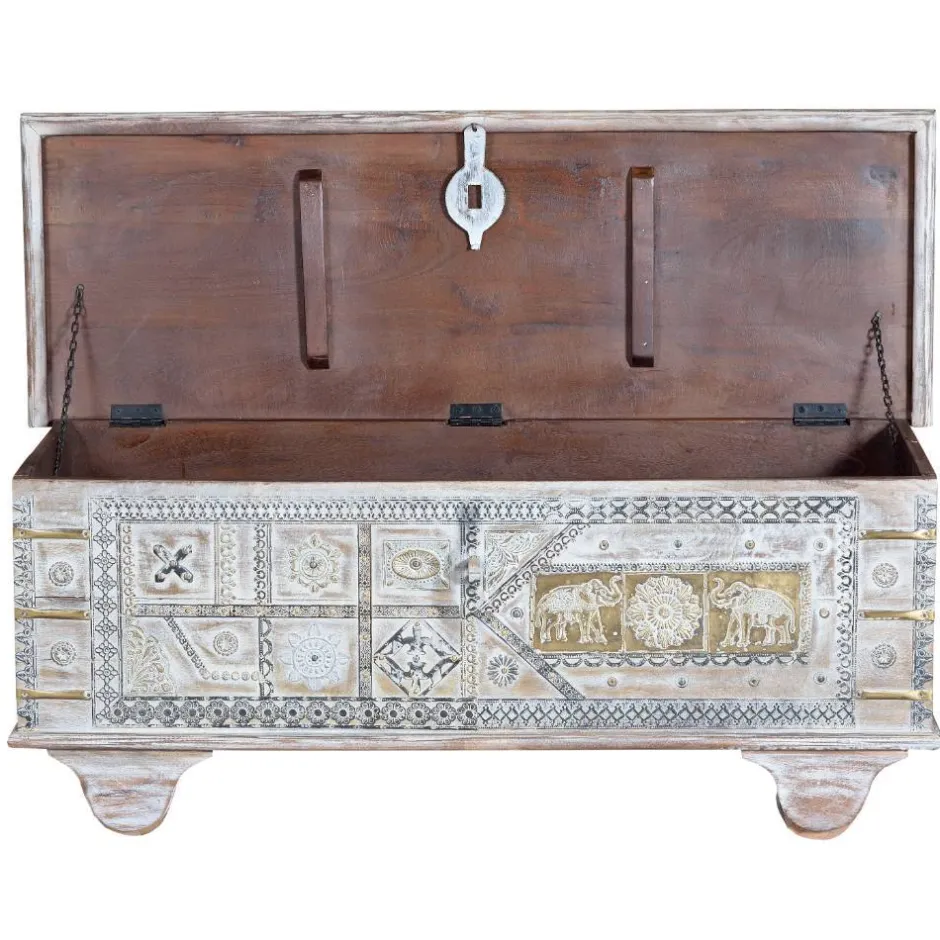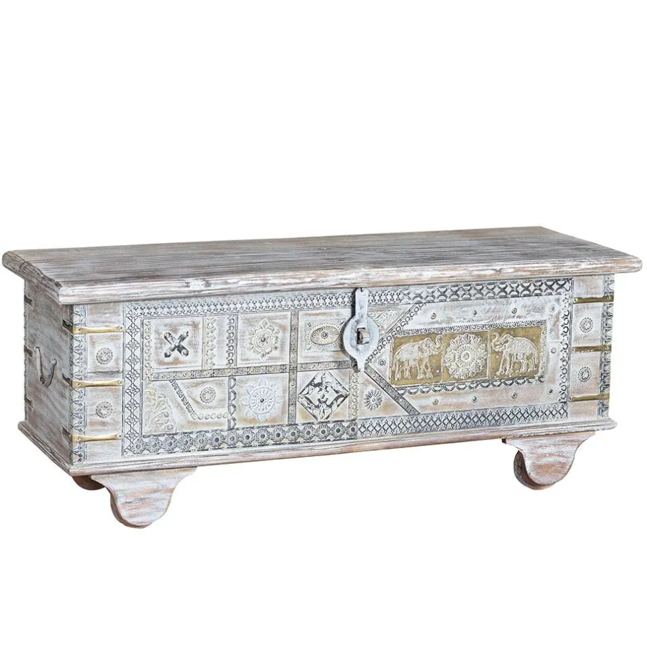 - Dekorative Truhe in Holz White Wash und mehrfarbig