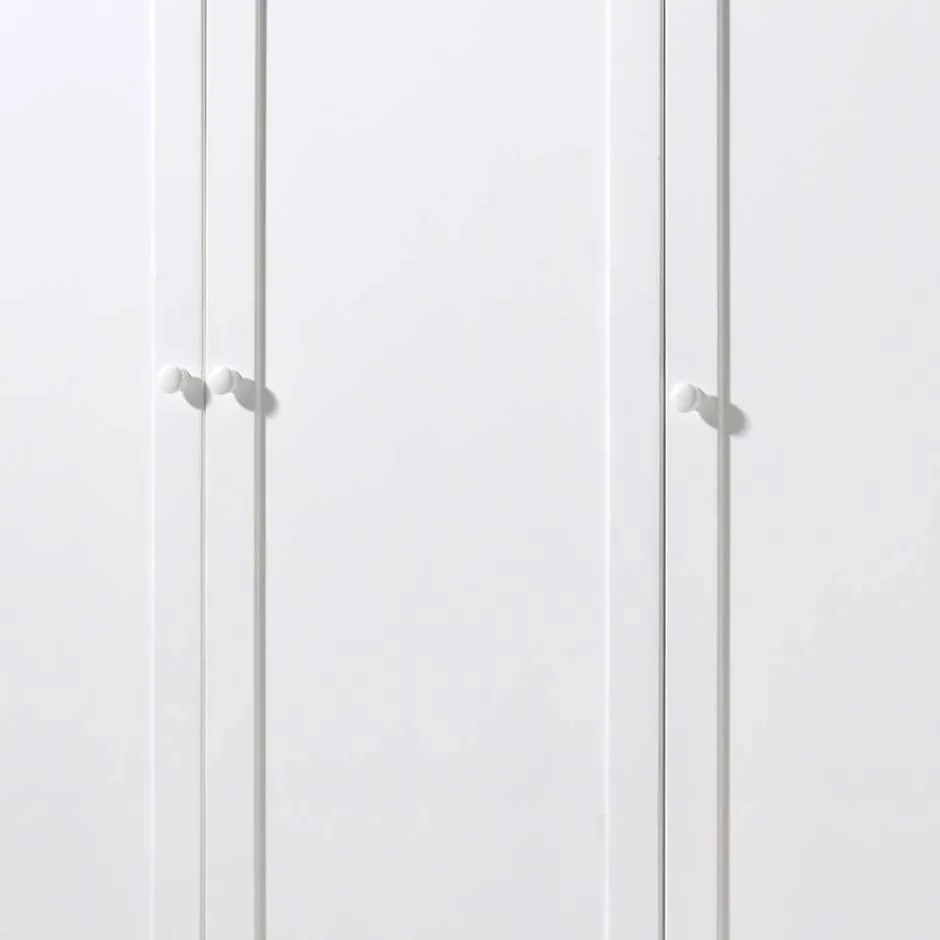 - Hinter den beiden linken Türen befindet sich oben und unten je ein Fachboden und darunter eine Kleiderstange (der untere Fachboden ist verstellbar)