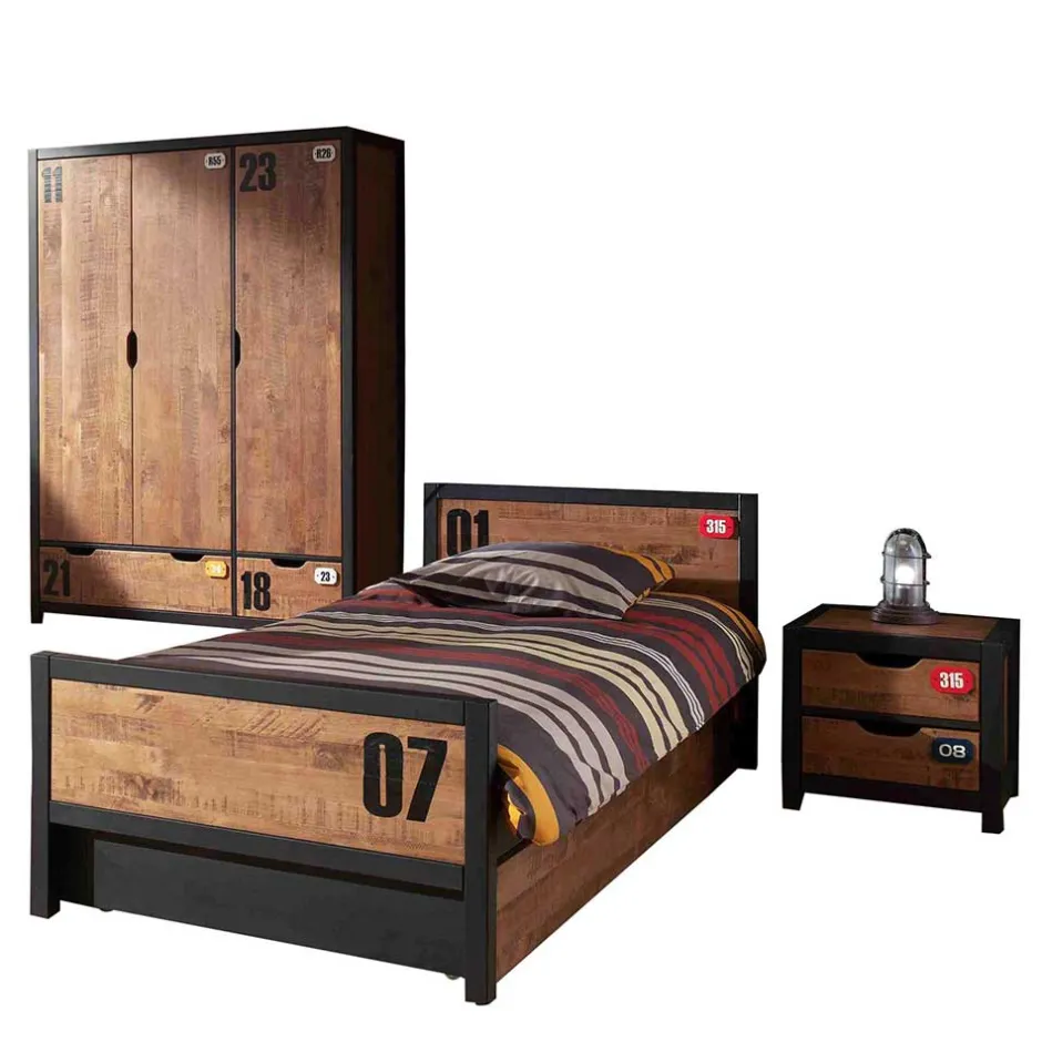 - Super Kinderzimmer in Kiefer Cognacfarben und Schwarz