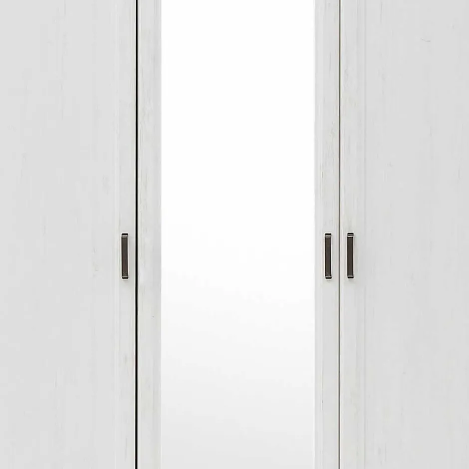 - Hell und freundlich wirkt der Kleiderschrank in Holzoptik Pinie weiß und Wildeichefarben