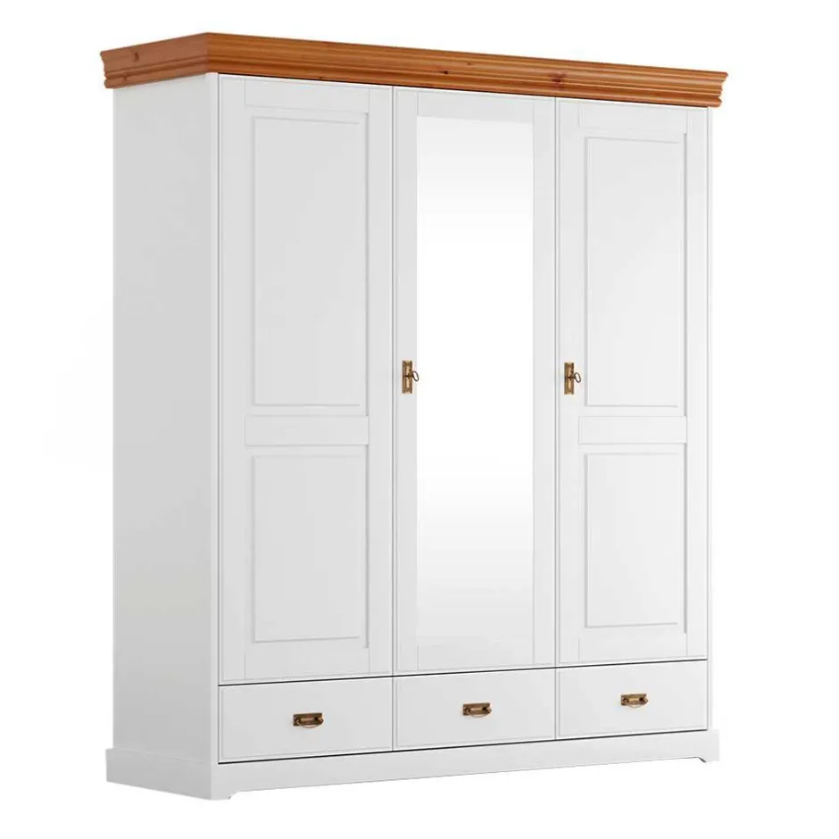 - Geräumiger Kleiderschrank in Weiß und Kieferfarben