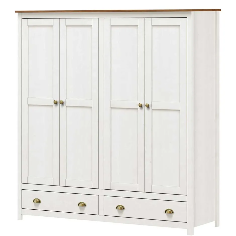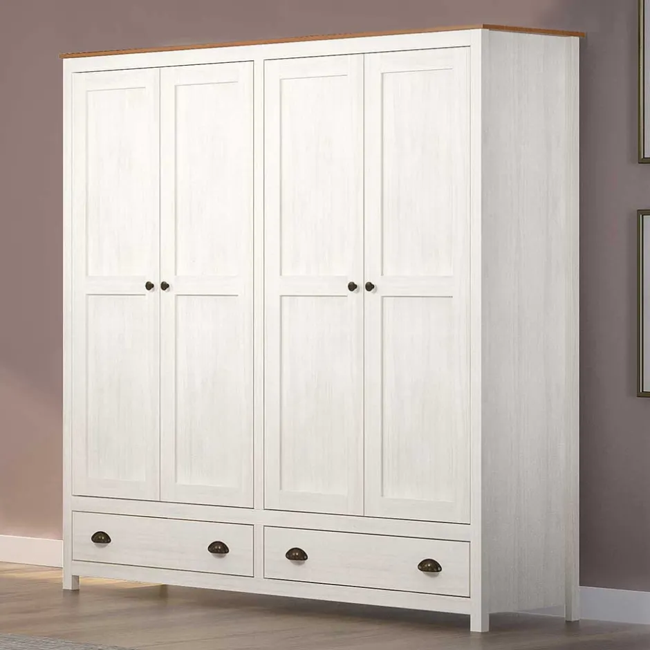 - Geräumiger Kleiderschrank in Weiß und Kieferfarben