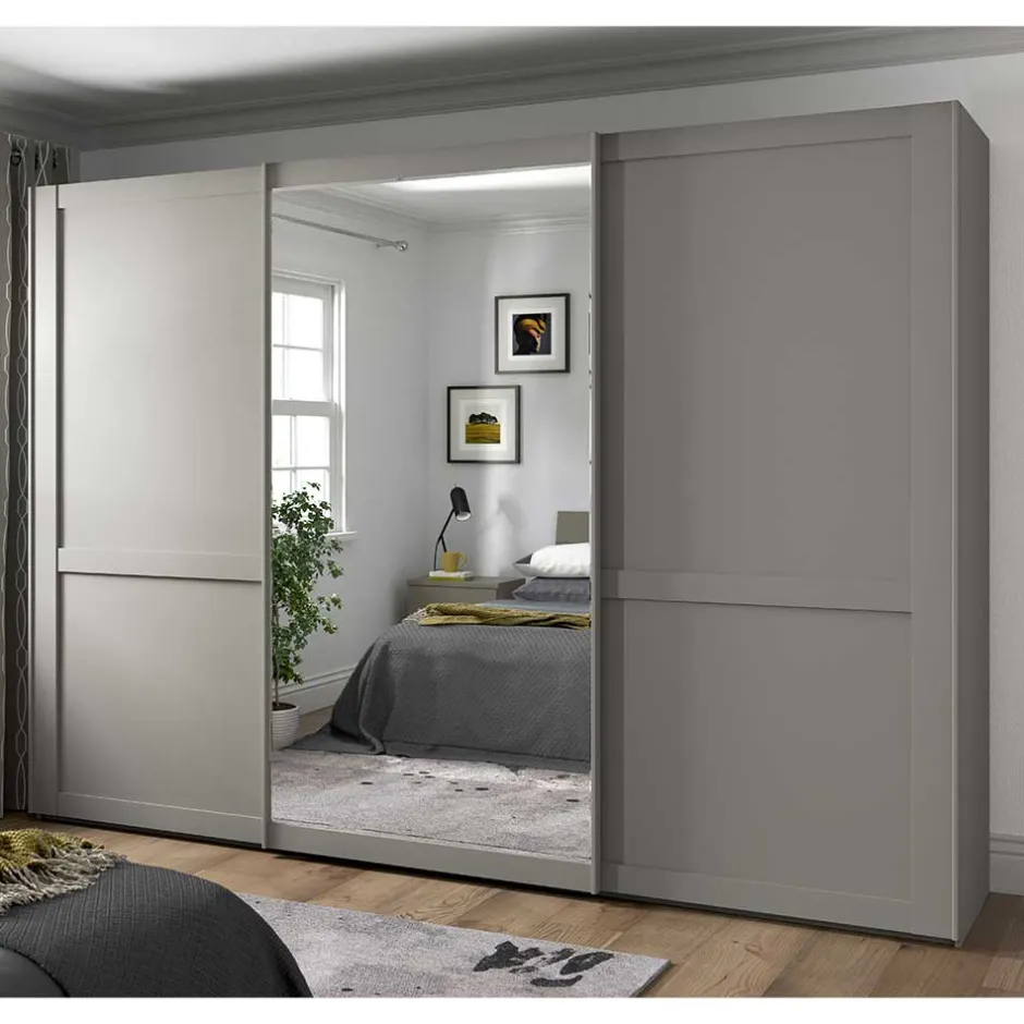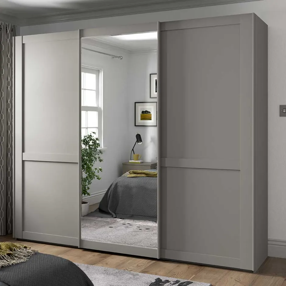 - Unempfindliche, folierte Oberflächen in Hellgrau, Innendekor in hellgrauer Holzoptik
