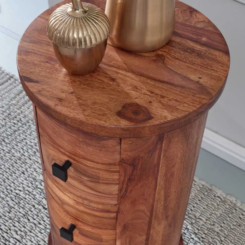 - Interessante Säulenkommode in Mangoholz Naturfarben