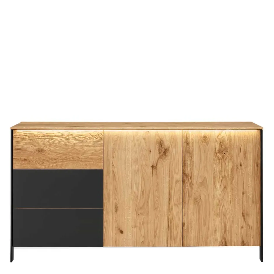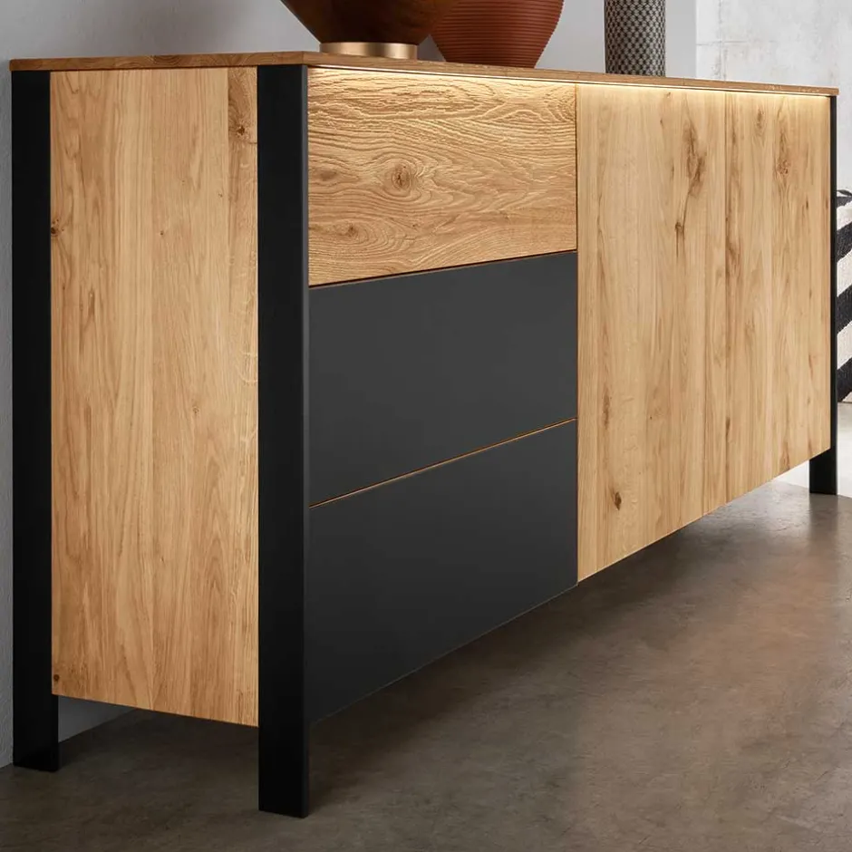 - Exklusives Sideboard in Wildeichefarben und Schwarz