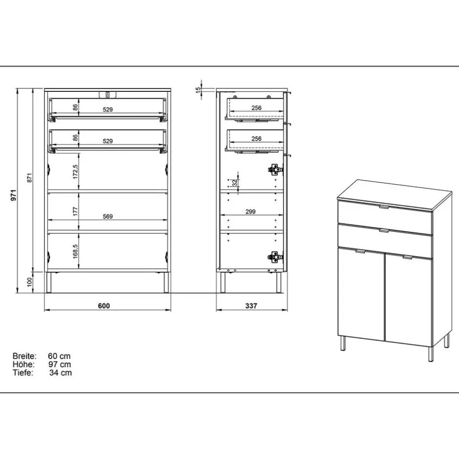 - 60 cm Breit, 97 cm Hoch, 34 cm Tief