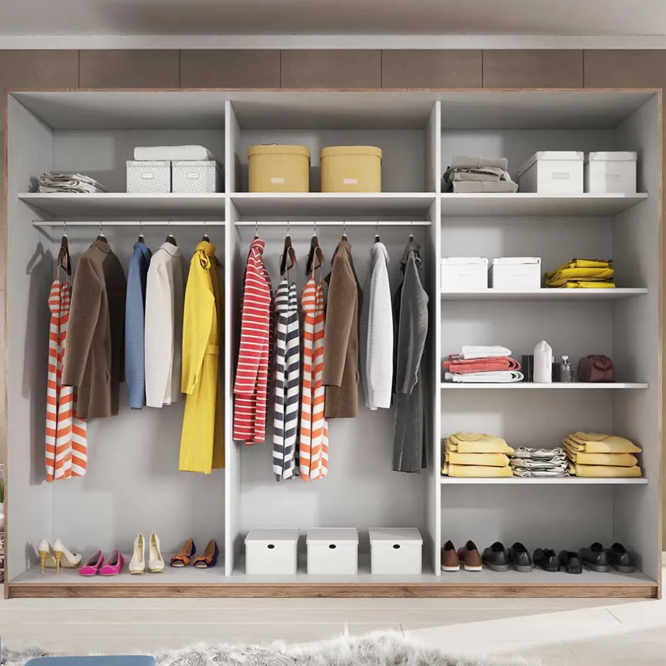- Zwei leichtlaufende Schiebetüren, eine Front glasbeschichtet