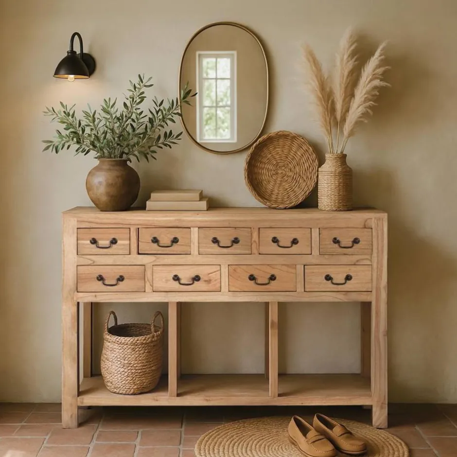 - Dekorativer Konsolentisch in Holz Naturfarben