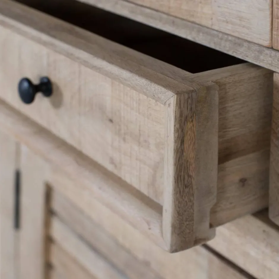 - Rustikaler Küchenschrank in Mangoholz Naturfarben
