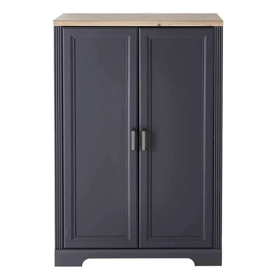 - Hervorragende Büroschrankwand in Dunkelgrau und Eichefarben