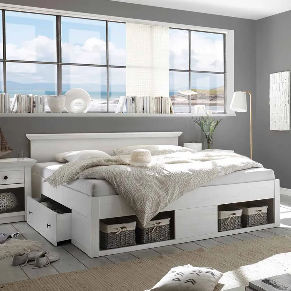 - Tolles Landhaus Doppelbett in Pinie Weiß