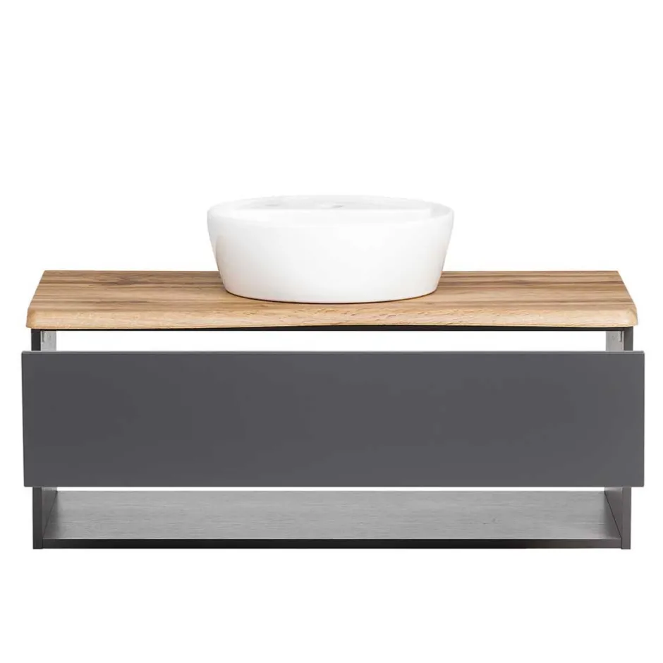 - Badmöbel Gruppe in Dunkelgrau und Wildeichefarben