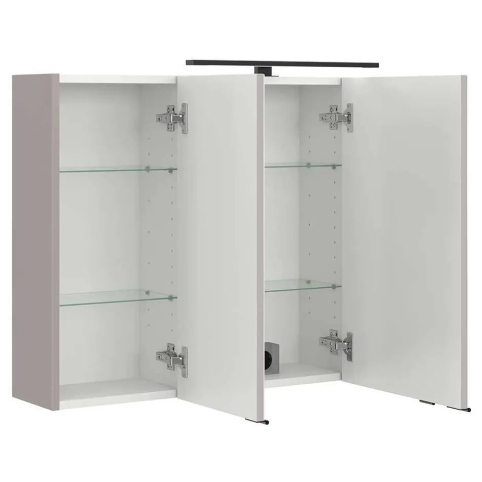- Korpus Oberflächen außen hellgrau, innen weiß foliert, Kanten tiefgezogen