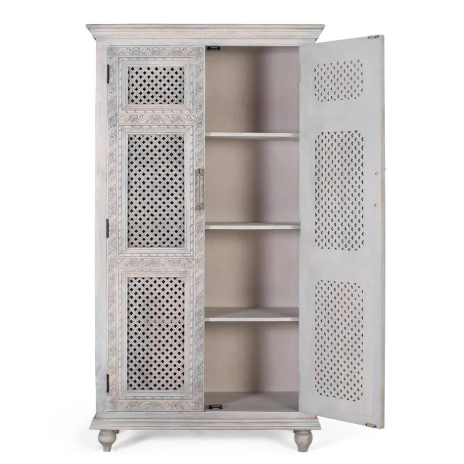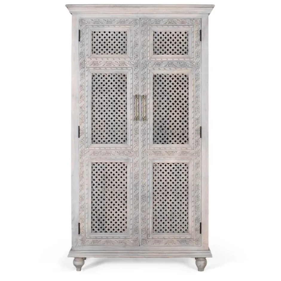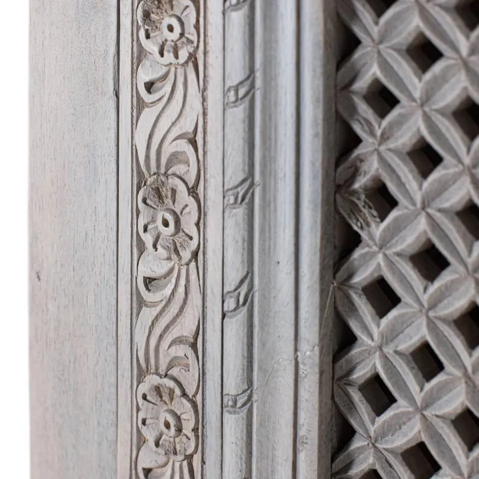 - Die Türen sind mit filigranen Durchbrüchen in Gitteroptik gestaltet