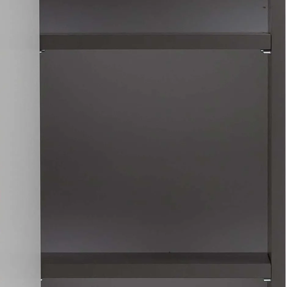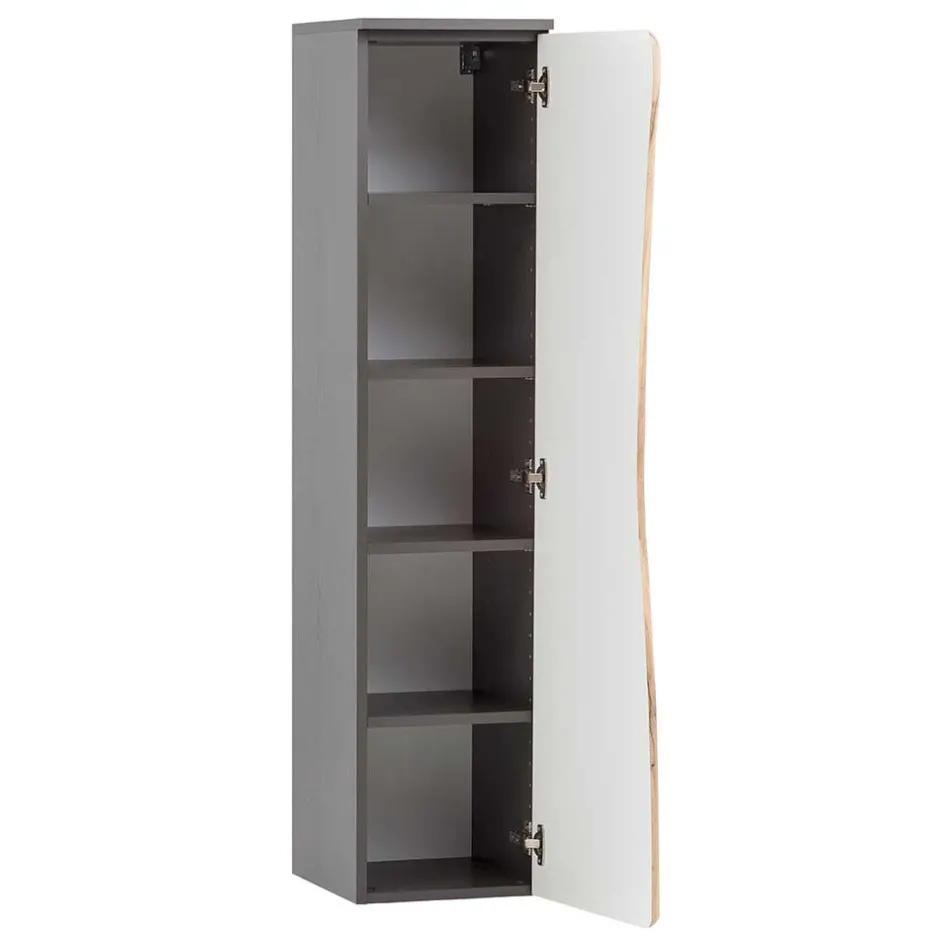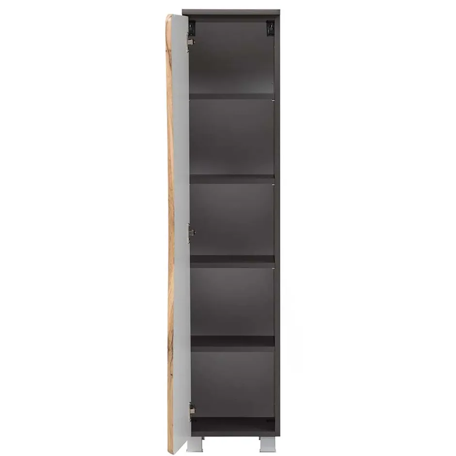 - Bad Midischrank in Dunkelgrau und Wildeichefarben mit Baumkante
