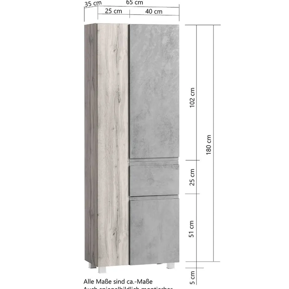- Trendiger Bad Hochschrank in Weiß und Wildeichefarben