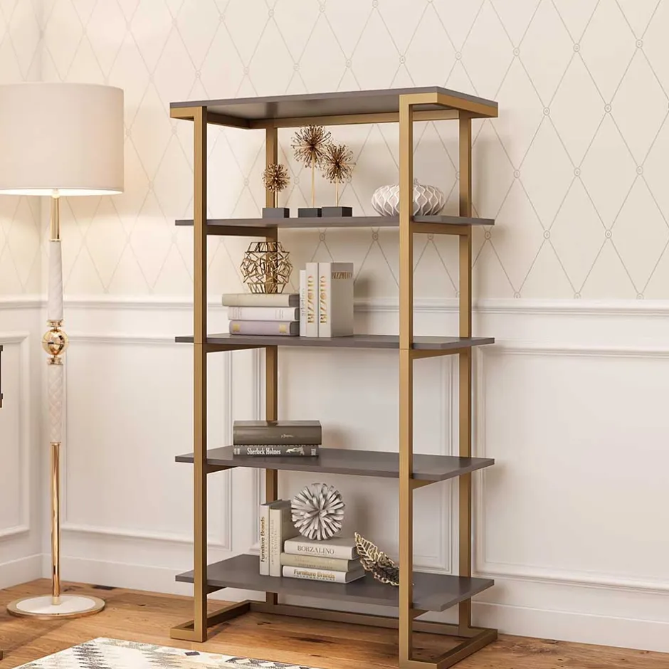 - Schickes Regal in Grau und Messingfarben
