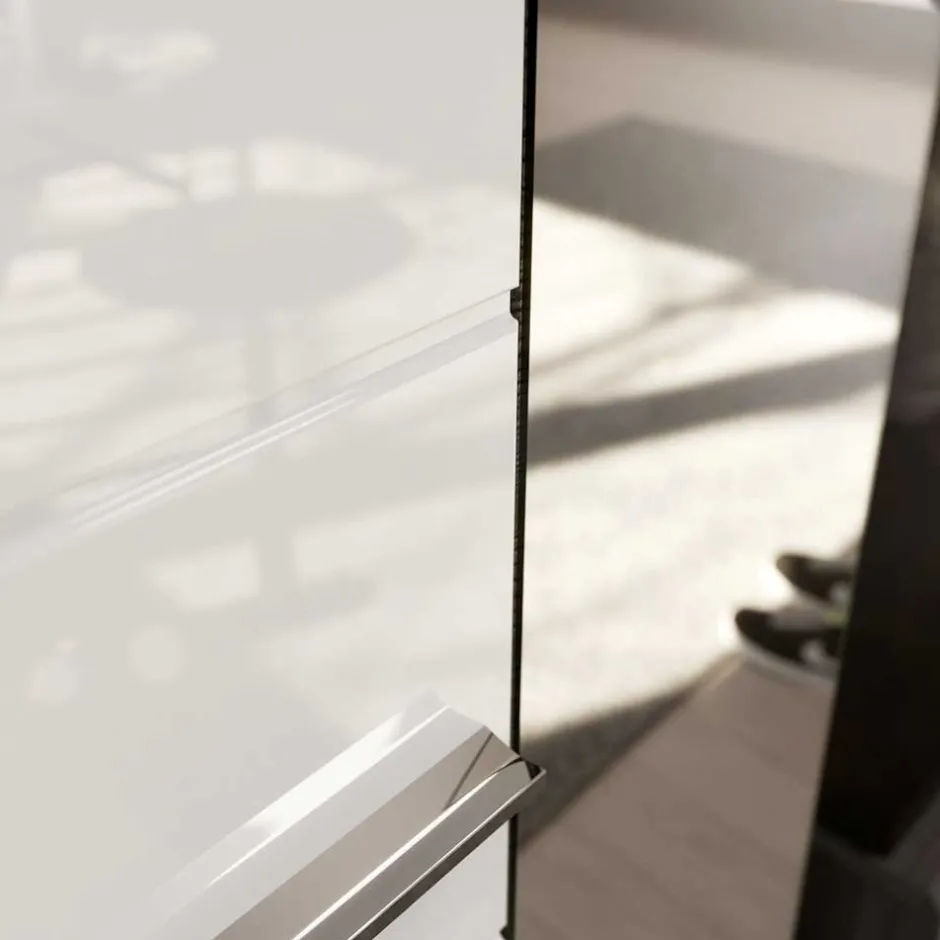 - Fronten weiß hochglänzend, Rillendekor