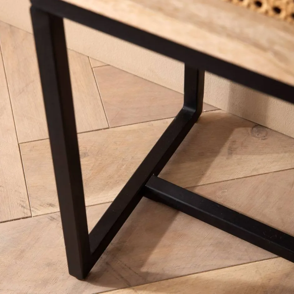 - Aus Mangobaum Massivholz, Rattan, Metall und MDF hergestellt