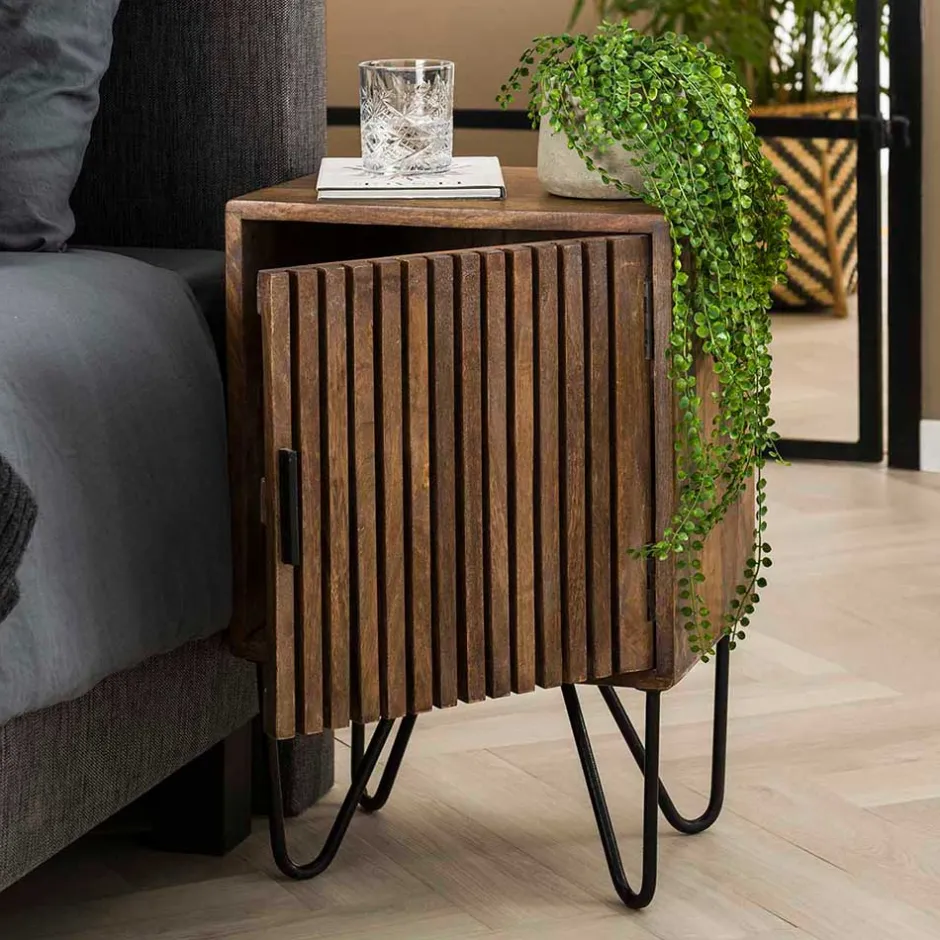 - Ansprechendes Nachttisch Set in Mangoholz Sand und Schwarz