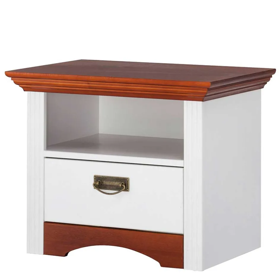- Schicke Nachtkommode in Weiß und Kirschbaumfarben