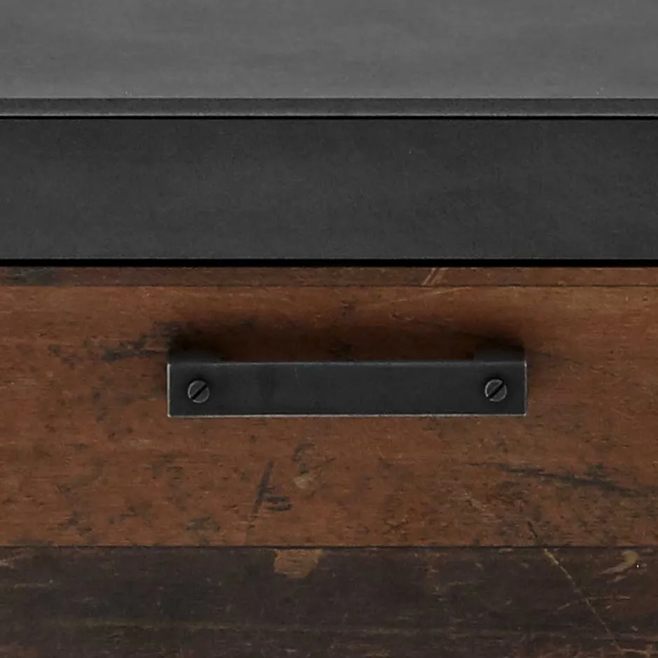 - Trendige Nachtkommode in Dunkelgrau und Altholz Optik