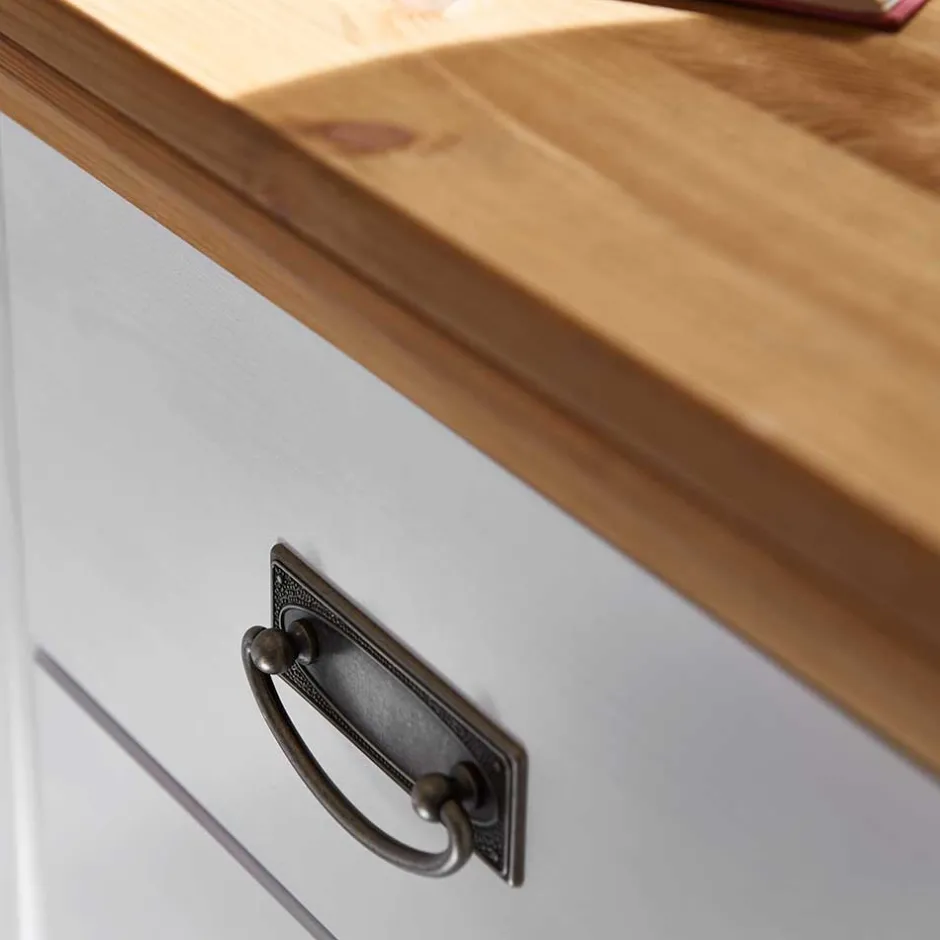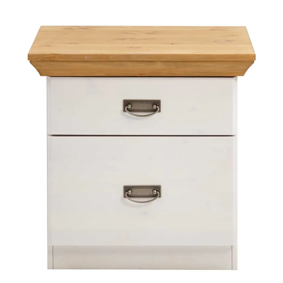 - Wunderschöne Nachtkommode in Weiß und Kiefer Laugenfarben